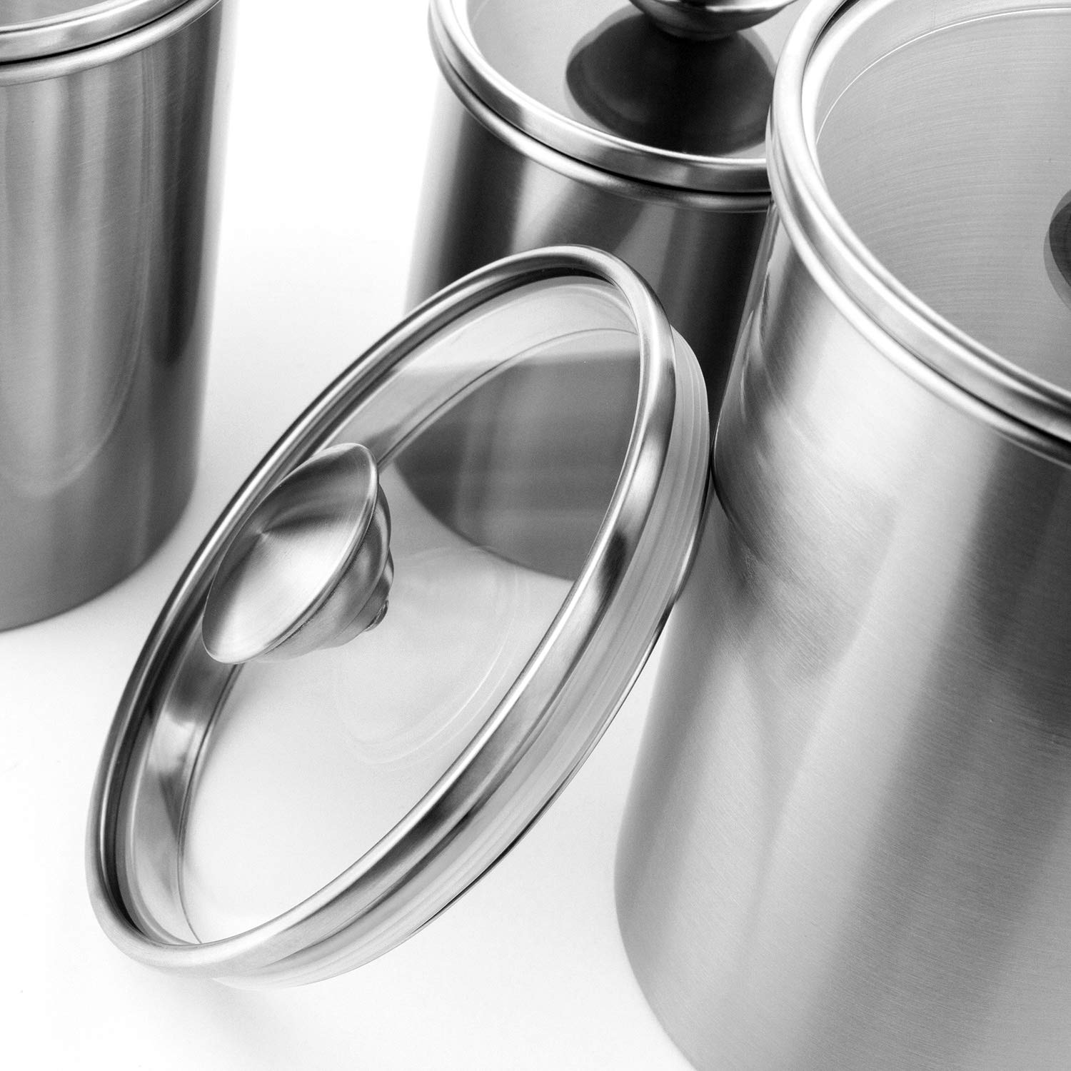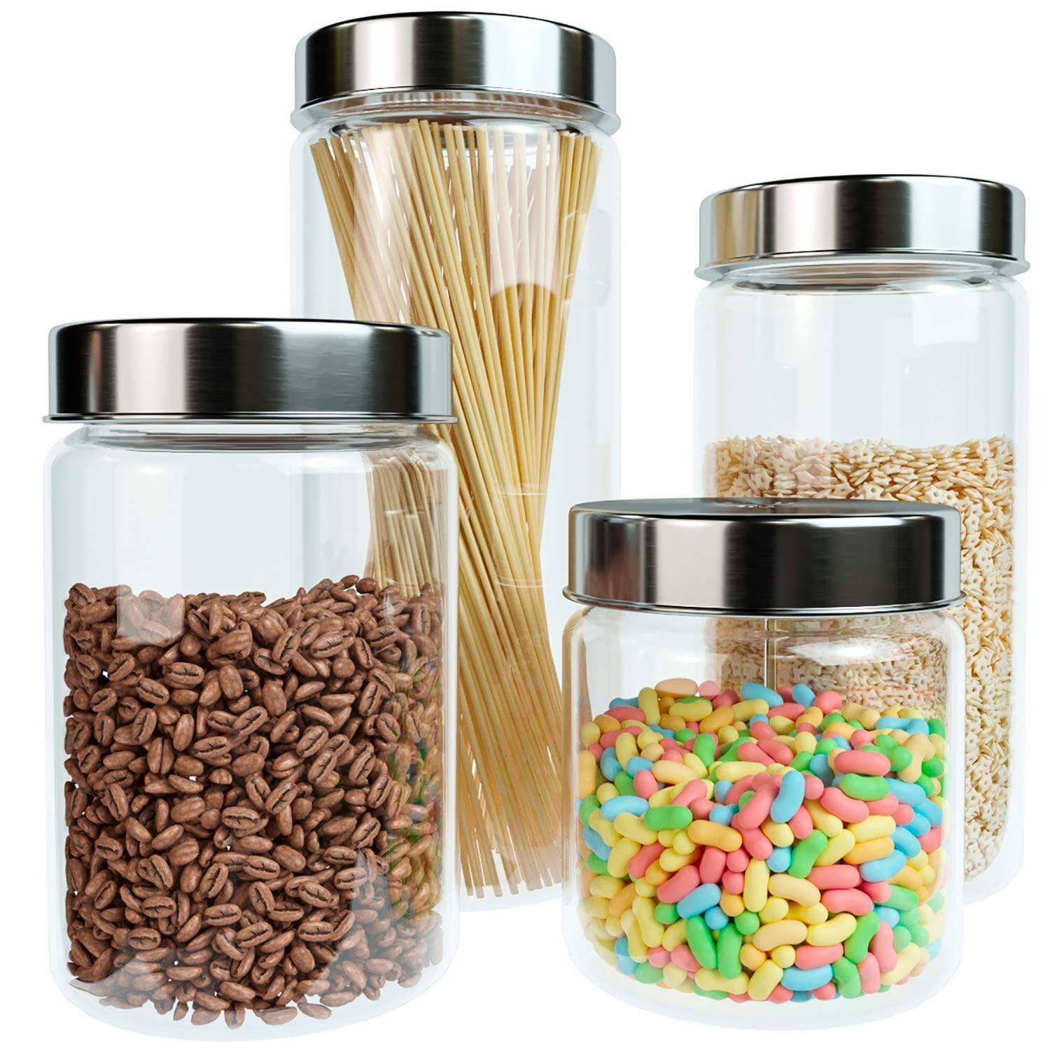 Get the best deals on glass kitchen storage container sets. Stainless steel stallion canisters colored ₹ 85/piece. 25, 40, 54, 67 oz. A perfect 4 piece canister set to keep you kitchen pantry neat and organized. Features a window for easy contents viewing.